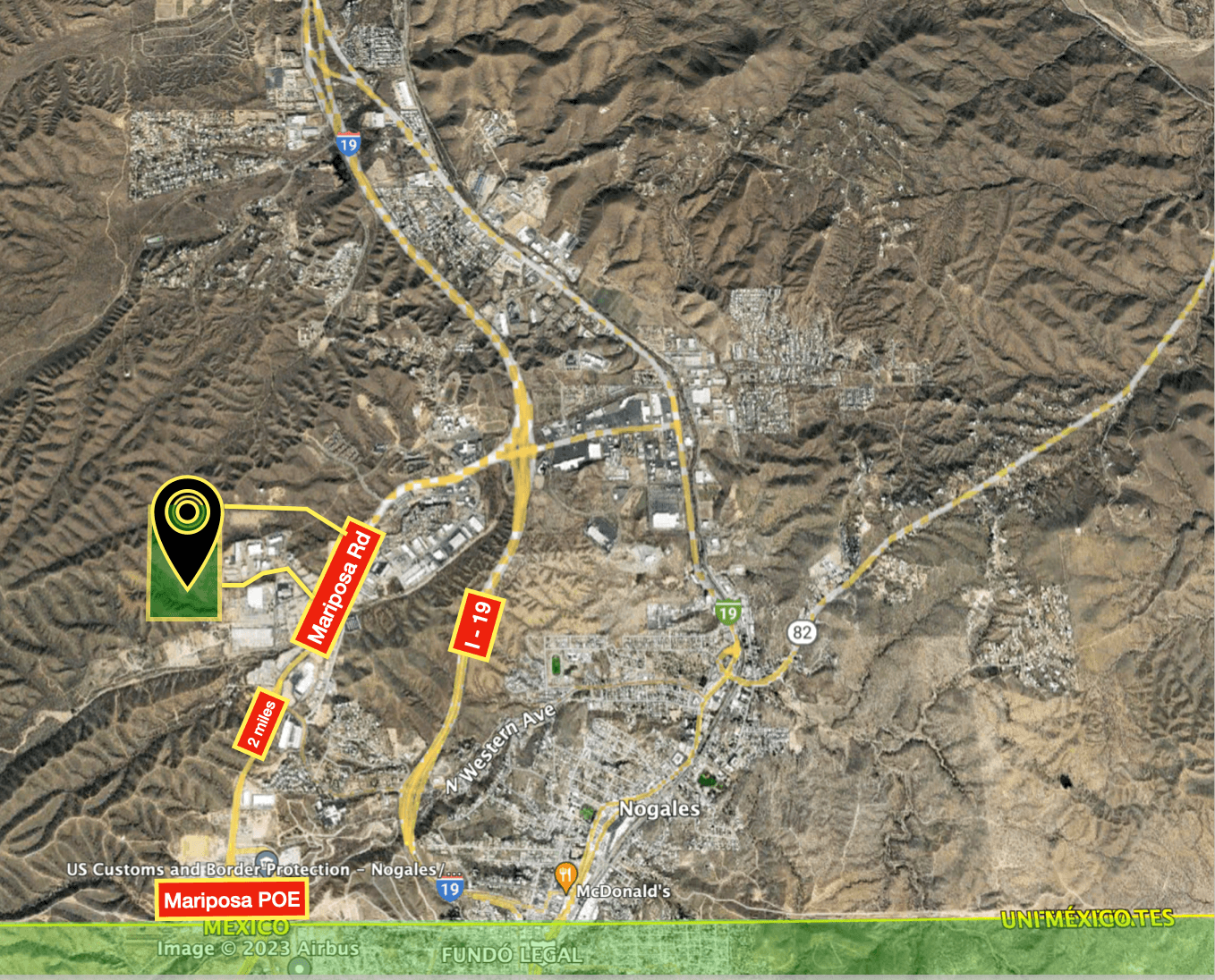 - Only place where U.S. I-10/ I-19 corridor meets Mexico’s highway 15